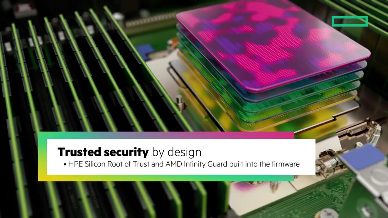 Up to 35% performance gain vs. Gen11 for select workloads. HPE Silicon Root of Trust and AMD Infinity Guard extend multi-layer security from hardware to firmware.
